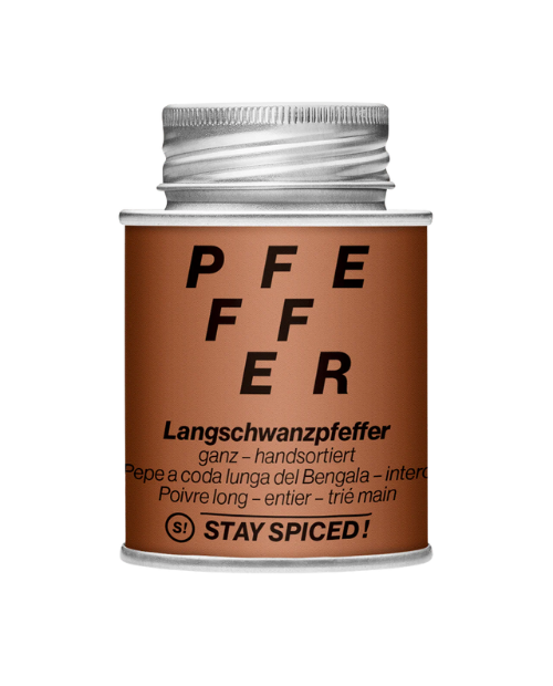 Die Früchte werden in Indonesien geerntet und sorgfältig verarbeitet. Erst nach Erfüllung der hohen Qualitätsstandards von Stay Spiced wird der Pfeffer in Dosen abgefüllt. Seine besondere längliche Form erinnert an Haselkätzchen und macht ihn einzigartig unter den Pfeffersorten.