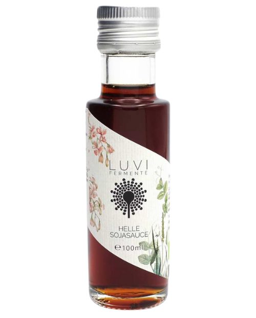 Luvi Fermente aus Regau am Traunsee in Oberösterreich ist auf handwerklich hergestellte Fermente spezialisiert. Grundlage der hellen Sojasauce sind Bio-Sojabohnen aus Österreich und Getreide aus regionalem Anbau.