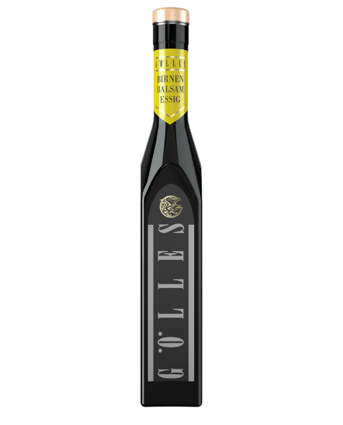 Die Essigmanufaktur Gölles in Riegersburg, Steiermark, ist seit 1979 für ihre hochwertigen Essige bekannt. Grundlage für diesen Balsamessig sind alte Mostbirnensorten, die mit großer Sorgfalt verarbeitet werden.