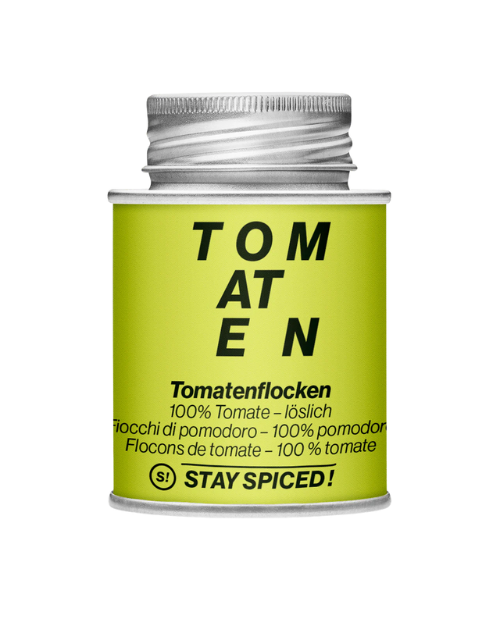 Stay Spiced mit Sitz in Salzburg bietet hochwertige Gewürze und Naturprodukte. Die Tomatenflocken bestehen ausschließlich aus sonnengereiften Tomaten und dienen als konzentrierte Alternative zu frischen Tomaten oder Tomatenmark.